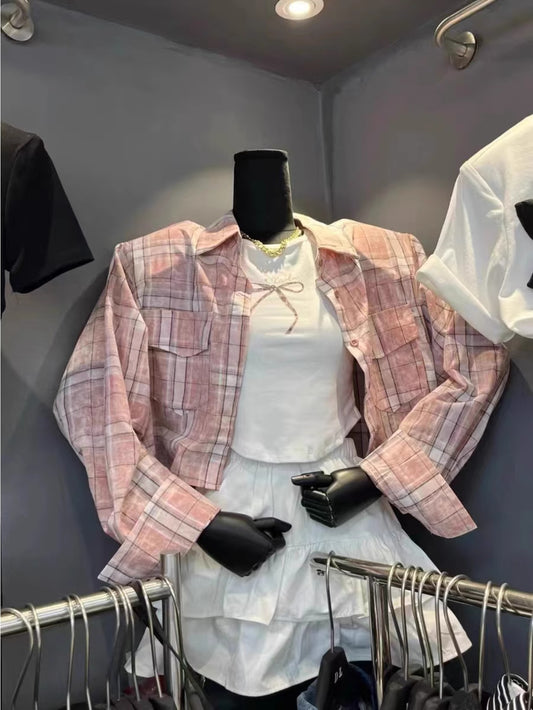 2024 New Sweet and Spicy Style Set Short Long Sleeve Shirt Vest 2-piece Set Women