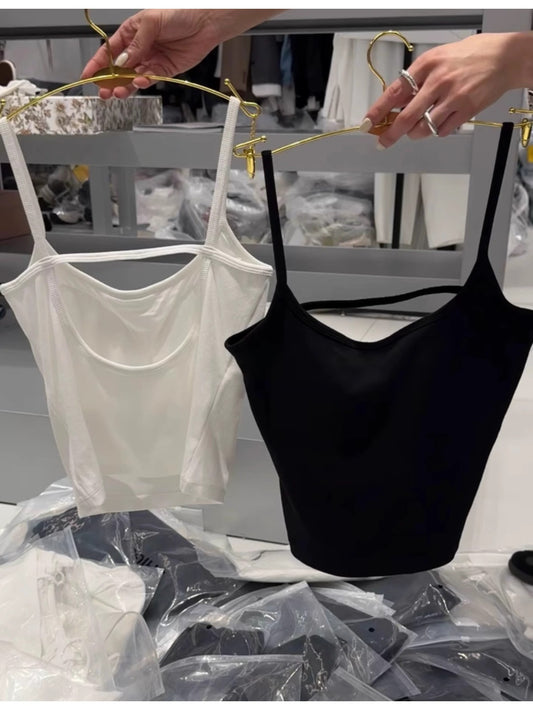2024 summer fashionable and elegant back bra small suspender hollow back tube top black