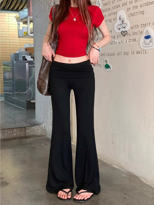 Black slim-fitting micro-flared pants women's summer niche drape casual pants floor-mopping pants trousers