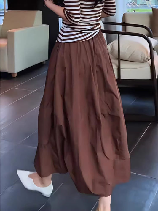 2024 summer new high waist and thin loose age reduction versatile pendulum caramel skirt women's clothing
