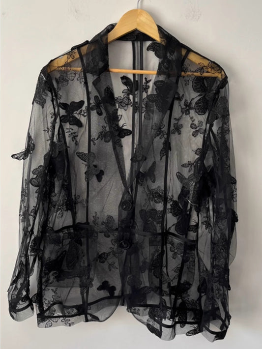 Butterfly embroidery black perspective mesh yarn stacking original designer Guochao versatile casual jacket
