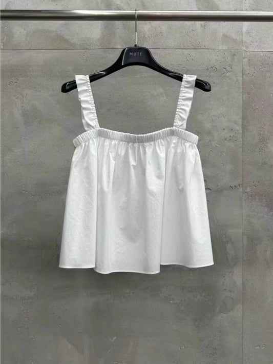 2024 summer new women's mute versatile fashion age-reducing pleated fungus edge sling vest