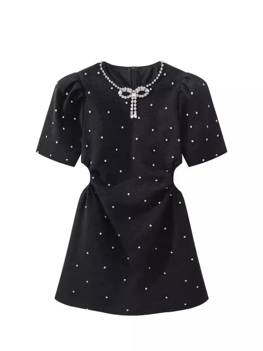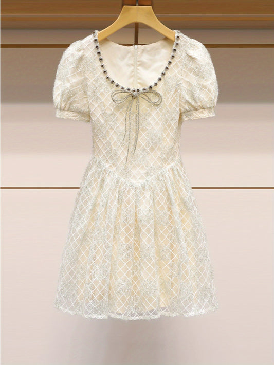2024 summer new court style bow rhinestone tutu skirt light luxury small fragrance waist dress skirt
