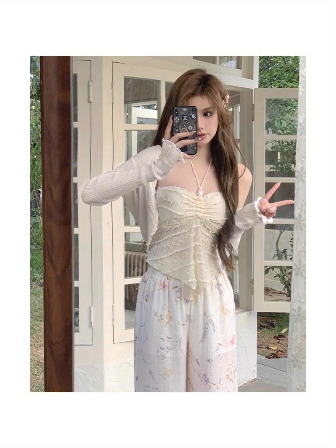 French small vest pure desire wind nude sunscreen shirt women with suspenders skirt with short summer shawl cardigan jacket 3-piece set