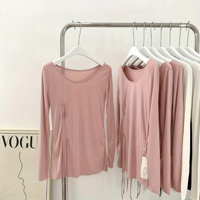 Sports top large size drawstring t-shirt women's fitness wear long sleeves autumn and winter new loose running blouse yoga clothes