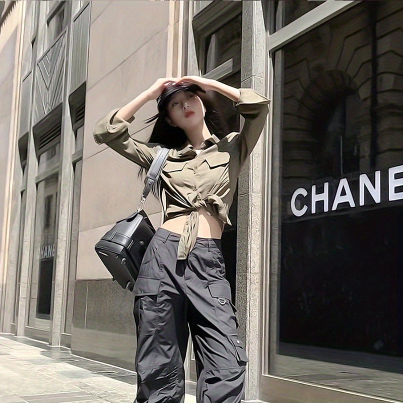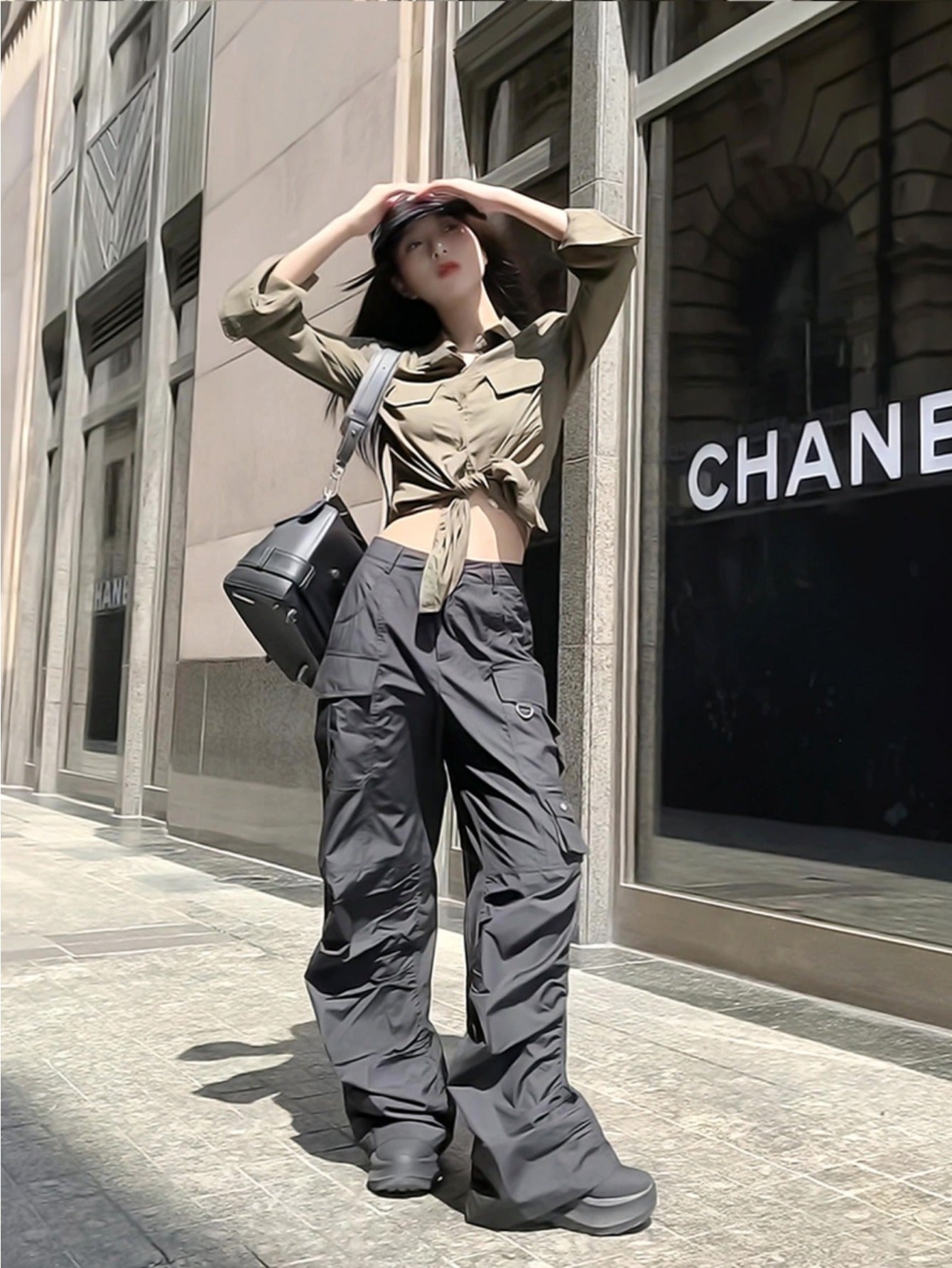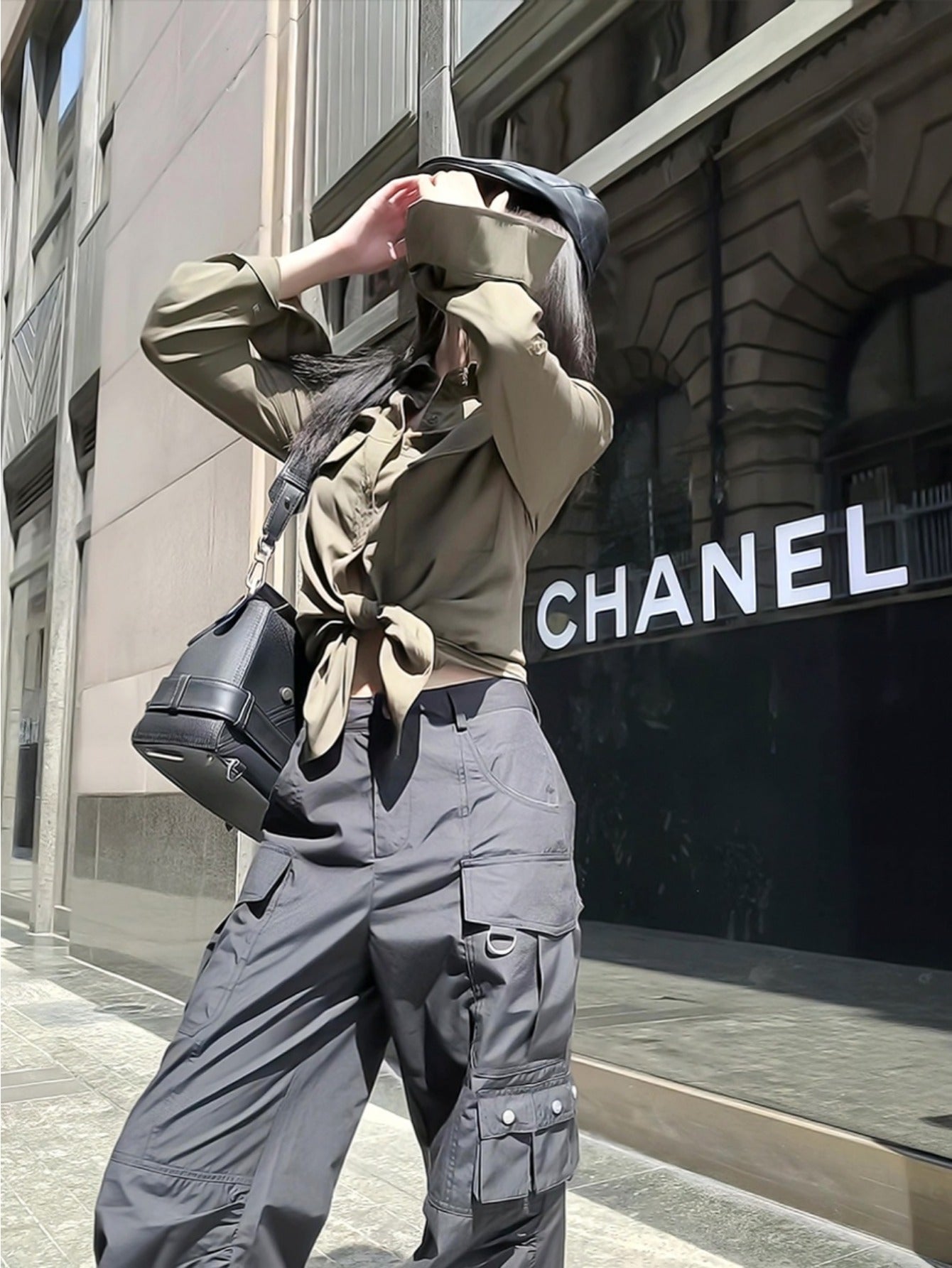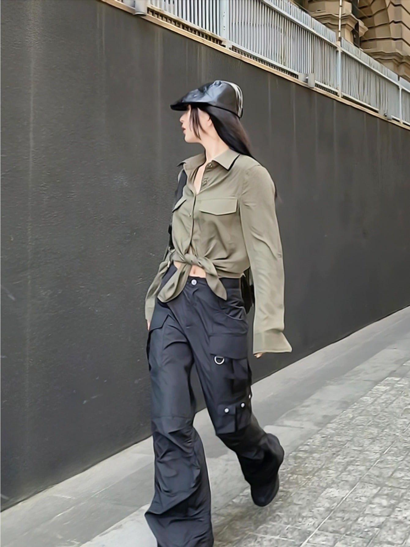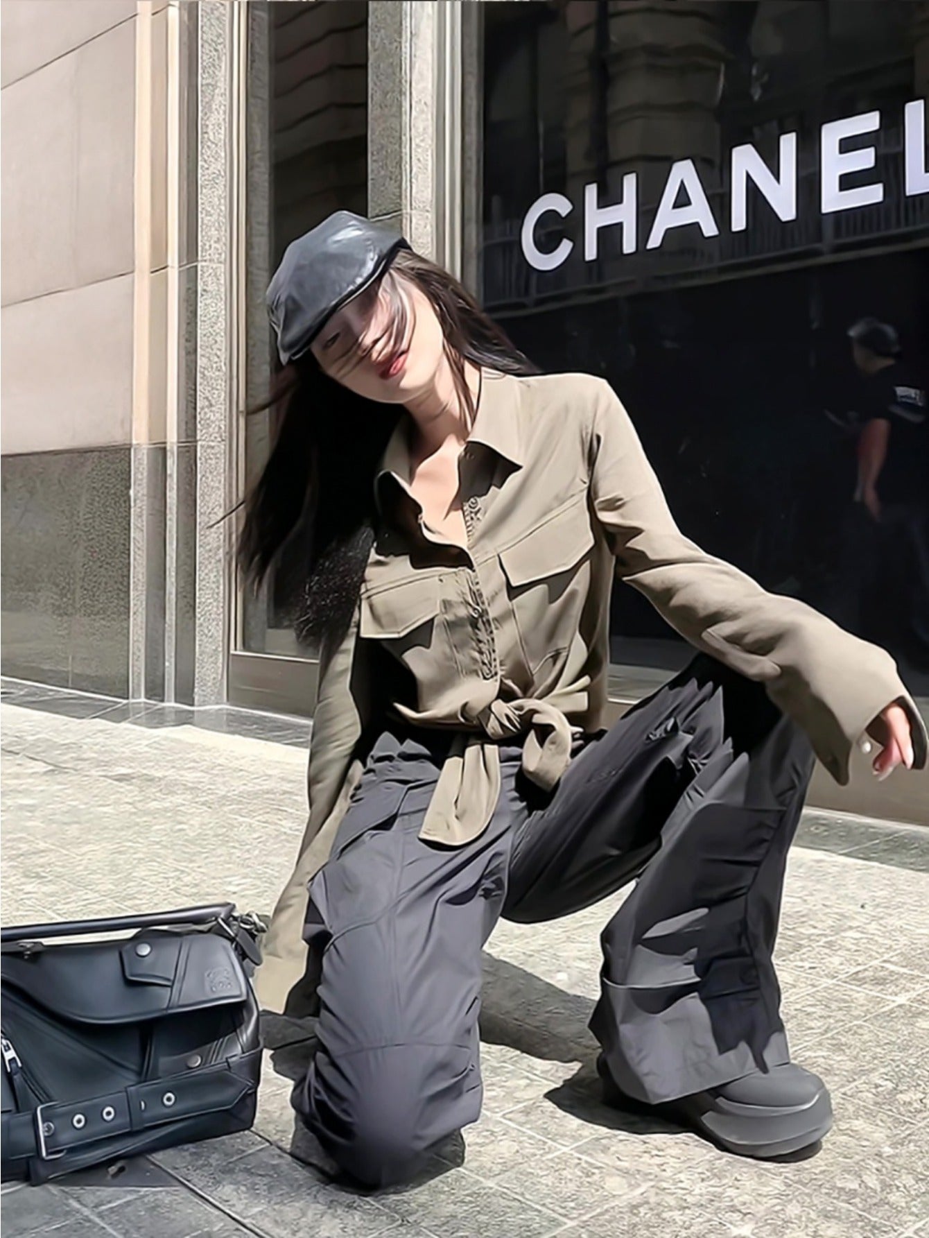 Sweet Spice Girl Long Sleeve Shirt Women's Chunqiu 2023 New Strap Design Sense Niche Cold Tooling Shirt